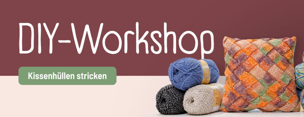 wohlige Stunden, warme Maschen und weiche Kissen – all das erwartet Sie bei unserem neuen Workshop „Kissenhüllen stricken“.